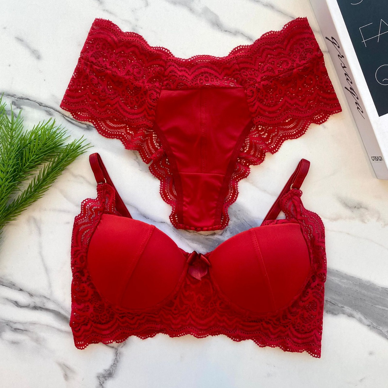 Romântico e delicado, nosso conjunto Bella é um conjunto maravilhoso e perfeito no uso. Encaixa perfeitamente nos seios e a rendinha do detalhe nas laterais do busto trás ainda uma "segurança" para as famosas sobrinhas do peito. Possui bojo e aro, o que garante segurança e conforto, além de uma lateral com ampla renda que abraça todo o cólo. A calcinha do conjunto bella é uma perfeita semi fio dental mais larguinha, com a frente em microfibra e toda a traseira em renda. O forro da calcinha do conjunto bella é malha 100% algodão.79
