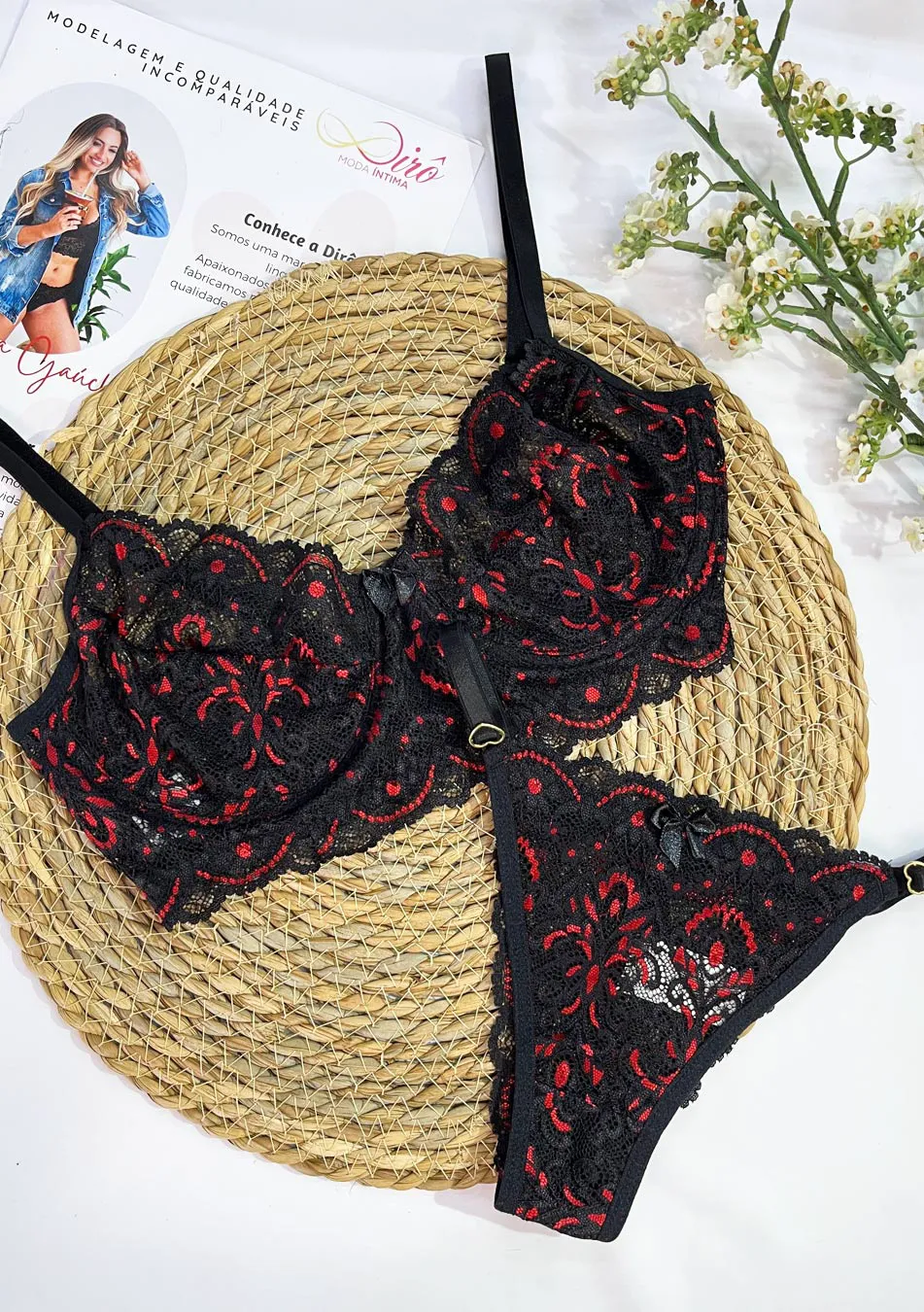 O Conjunto sensual em renda sem bojo com aro meia taça é para você que ama uma lingerie sexy para compor o seu look.